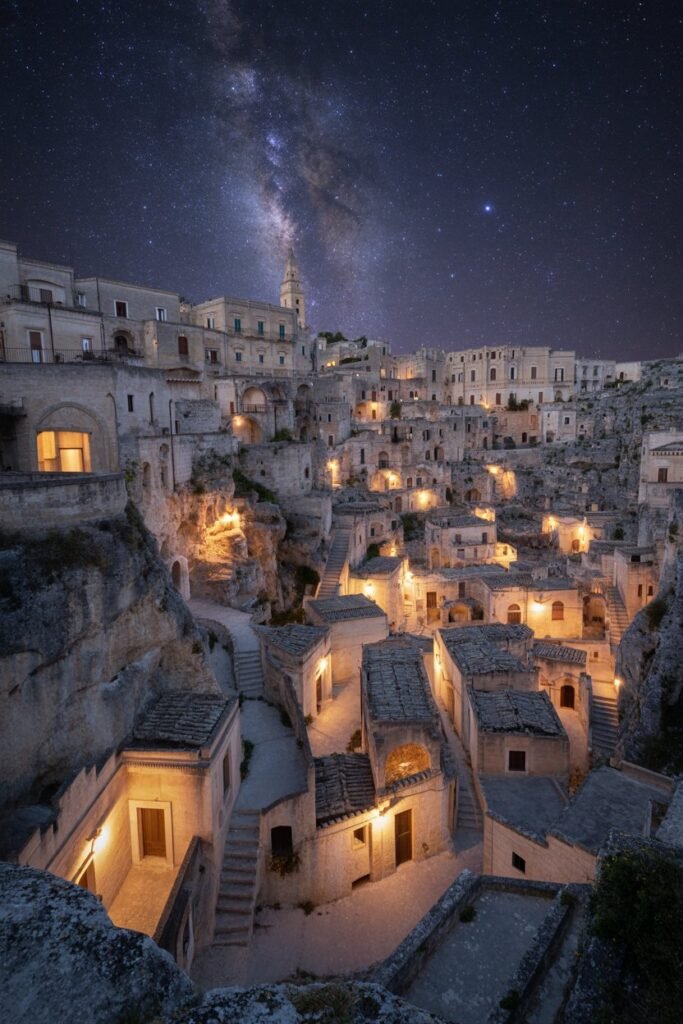 Its cave dwellings (Sassi) carved into limestone cliffs create a dramatic, almost biblical landscape.