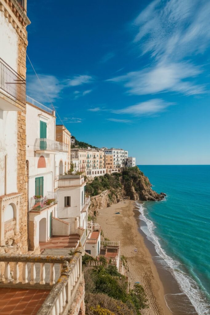 Whitewashed buildings overlooking turquoise waters like a quieter Amalfi Coast.