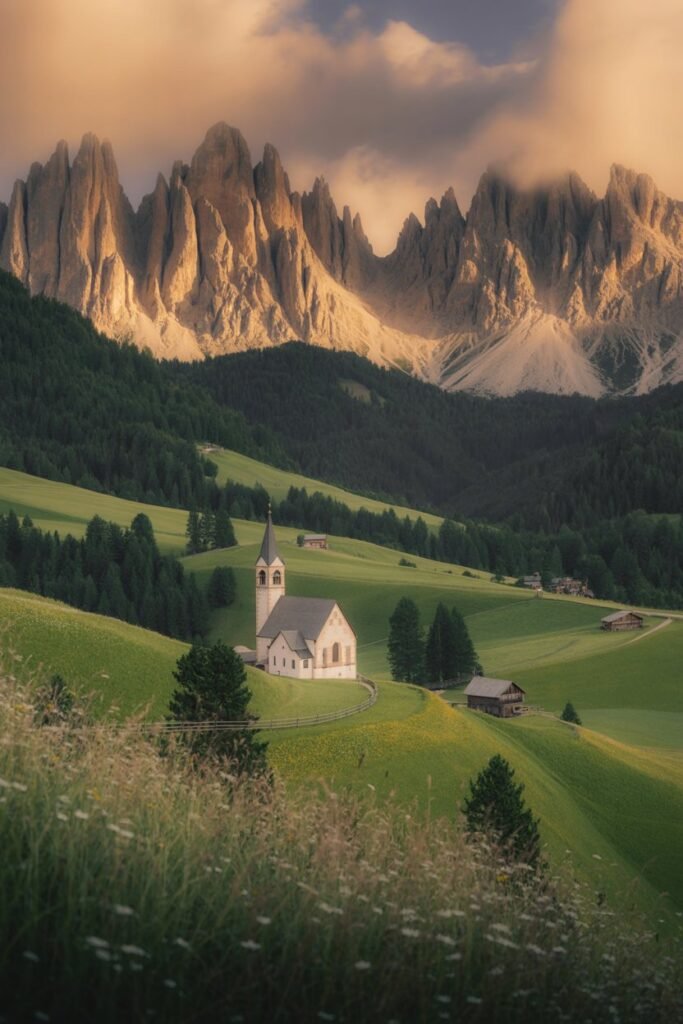 Rolling green meadows, dramatic peaks, and iconic churches like Santa Maddalena.
