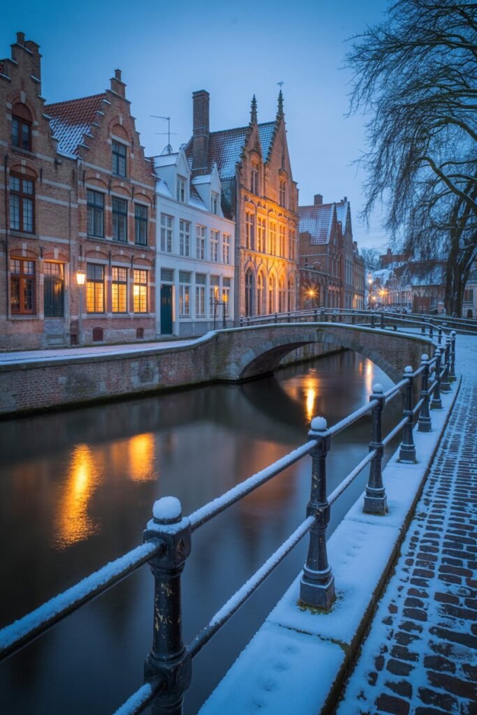 Bruges in winter is soft, quiet, and incredibly romantic. Canals reflect glowing lights, and chocolate shops feel extra tempting.