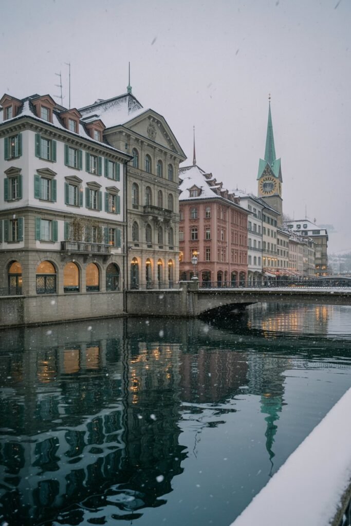 Zurich in winter feels polished and peaceful. Snowy streets, luxury shopping, and easy access to the Swiss Alps make it ideal for winter travelers.