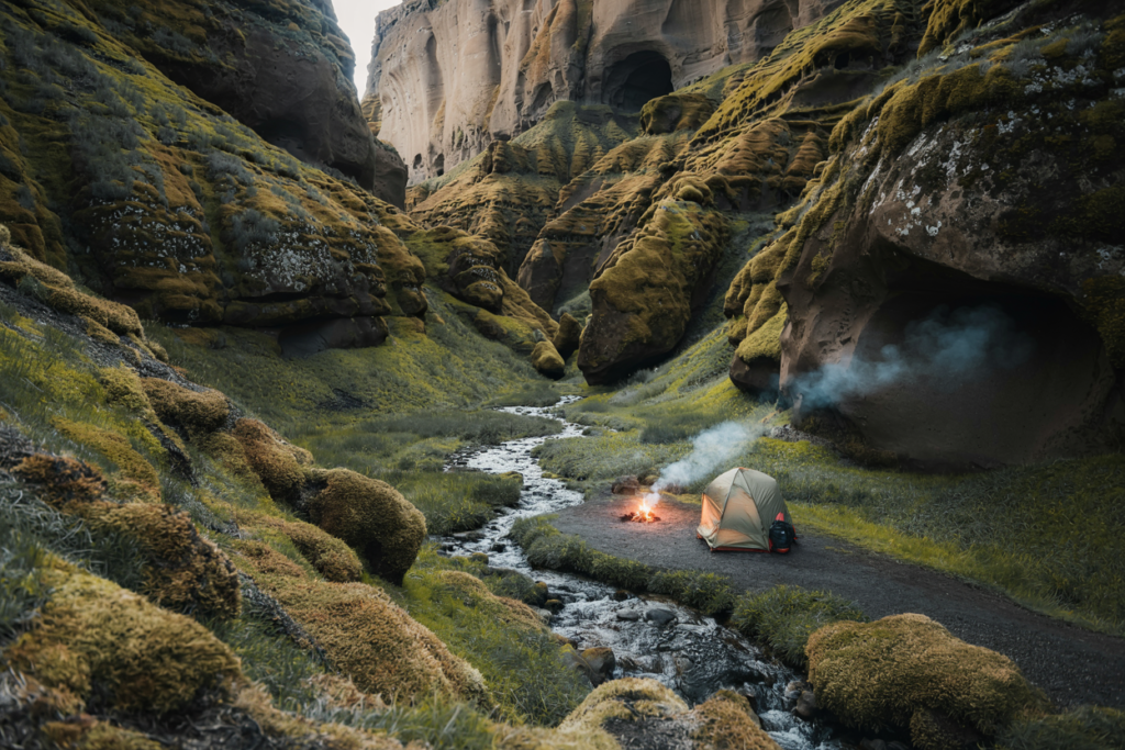 Where & access: South Iceland near Vík; access via a winding gravel road requiring a high-clearance vehicle (some parts can be tricky after rain). Follow the road signs to the Þakgil campsite.