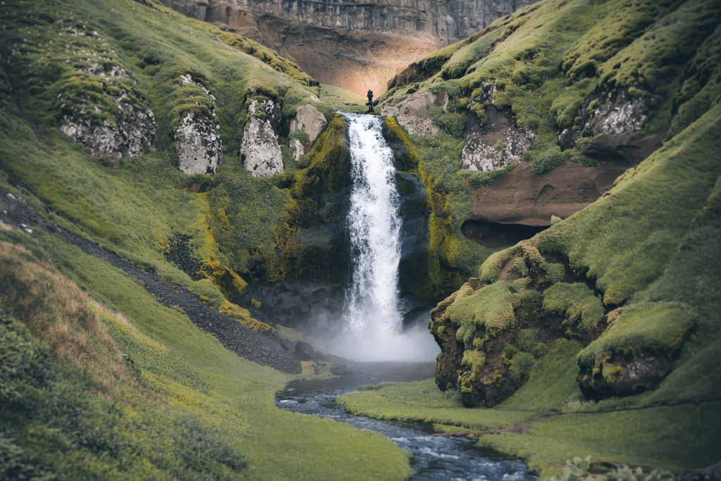 Why go: A short, lesser-known waterfall tucked behind cliffs where you can walk behind the curtain of water you’ll often have the place to yourself despite being near the popular Skógafoss.