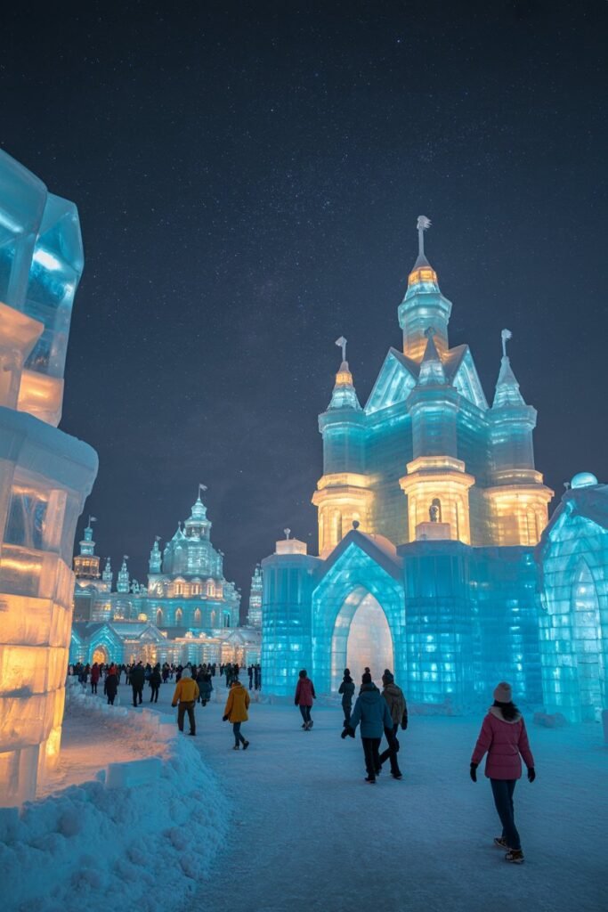 - Nighttime walks through illuminated ice cities