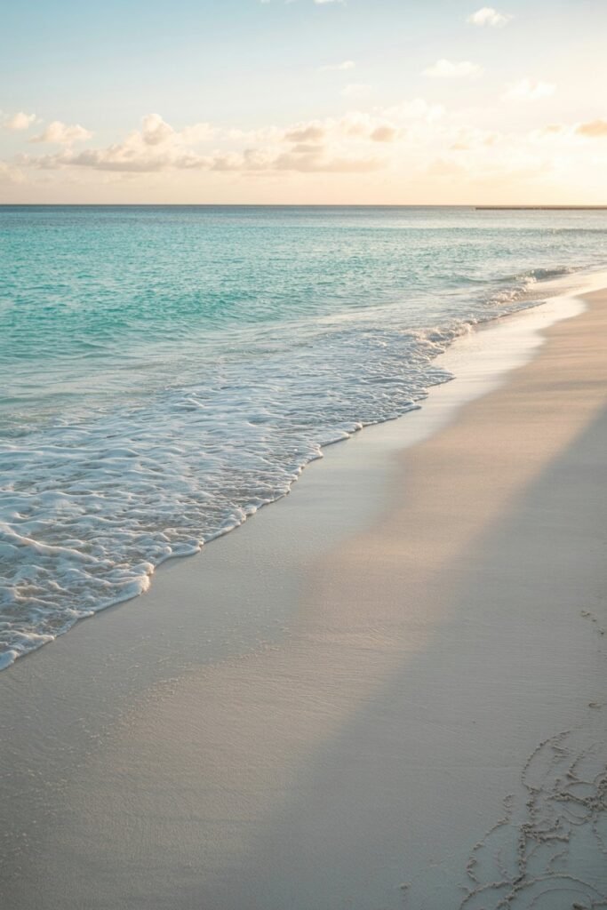- Quiet beach mornings with golden light