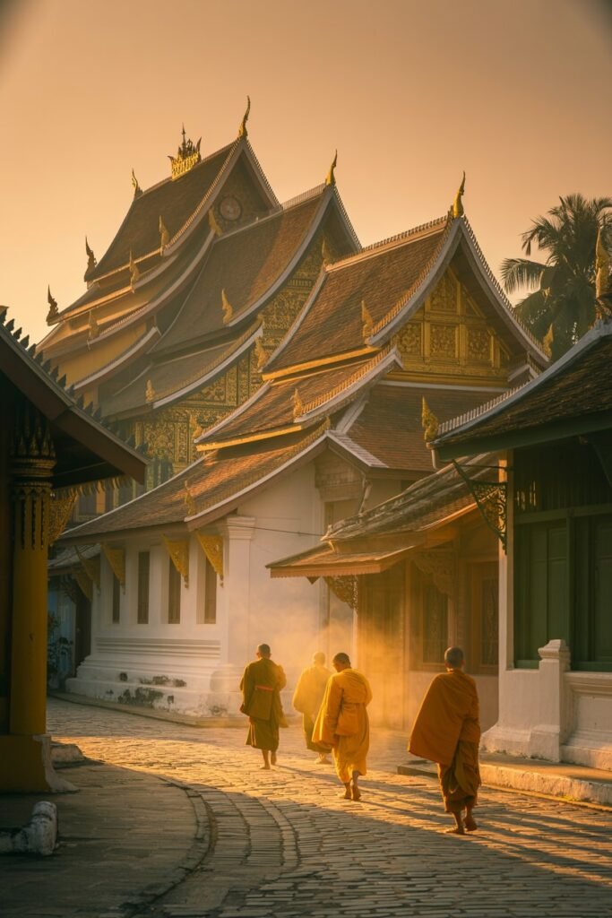 Wake before sunrise to witness the daily alms-giving ceremony monks in saffron robes moving silently through the streets. It’s peaceful, respectful, and deeply grounding.