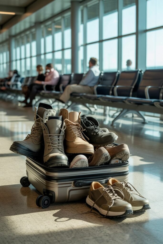 On flights, you’ll wear one pair. At most, pack lightweight foldable flats if absolutely necessary but honestly? Even those can go in checked luggage.