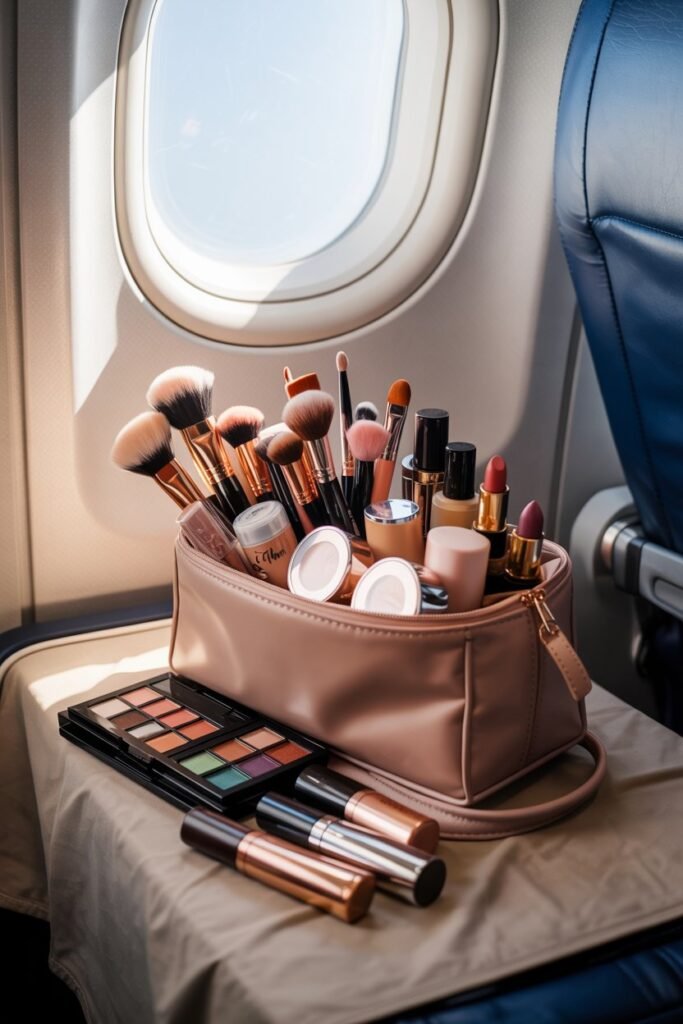 Cabin air is dry. You’ll likely remove makeup or arrive wanting to refresh anyway.