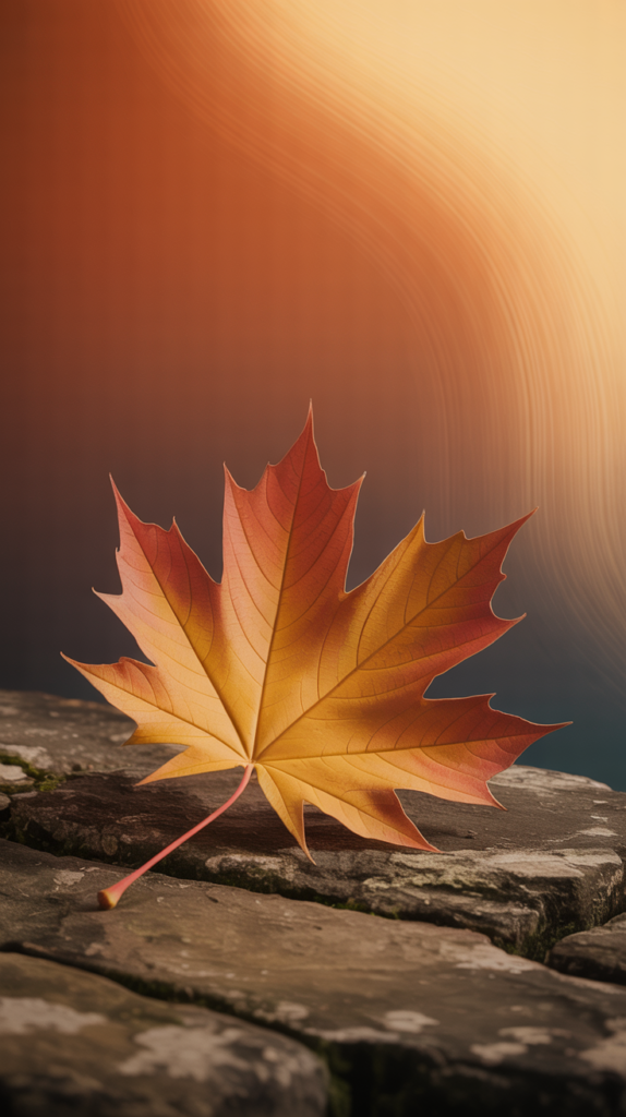 A close-up image of a single autumn leaf, showing its intricate veins in shades of orange, gold, and brown, gives your phone a minimalist yet natural vibe.