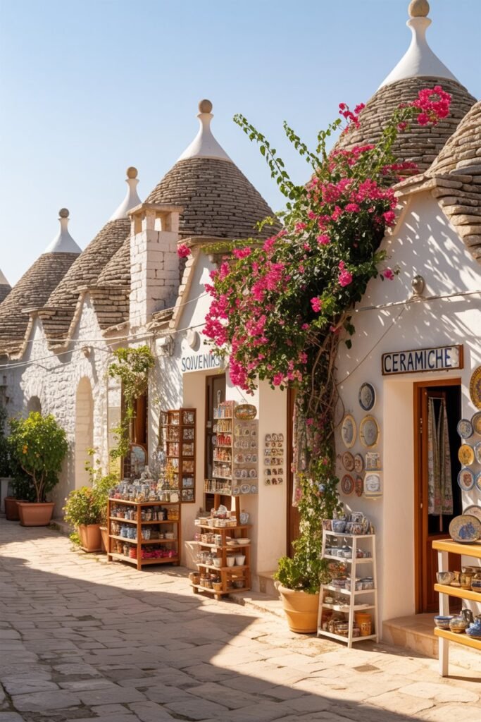 Alberobello is famous for its “trulli”—white stone huts with cone-shaped roofs. Walking through this town feels like stepping into another world.