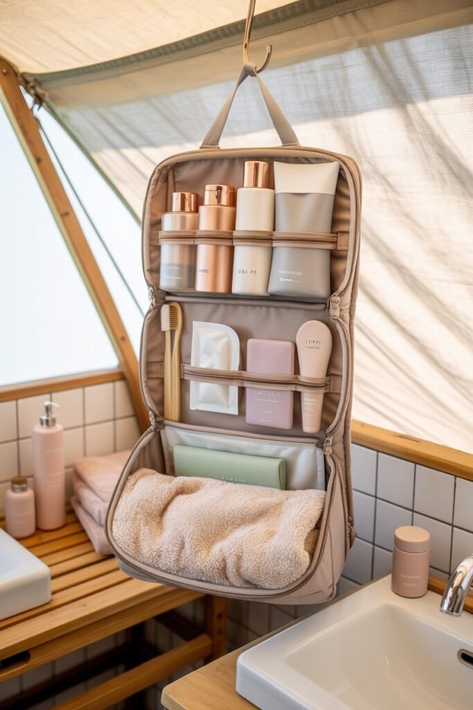 Keep everything in a hanging organizer so it stays clean and accessible.