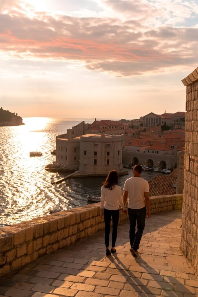 Dubrovnik feels dramatic in the most romantic way. When my fiancé and I talked about Dubrovnik, we imagined stone streets glowing at sunset, the Adriatic shimmering below, and evenings that feel cinematic without trying too hard.