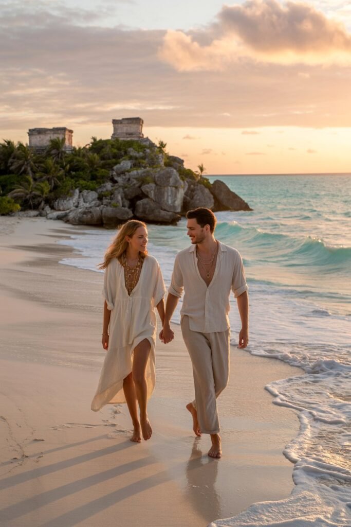 Tulum feels relaxed, soulful, and romantic in a modern way. When my fiancé and I talked about Tulum, we imagined barefoot walks on the beach, slow mornings with smoothies, and nights lit by candles and soft music.