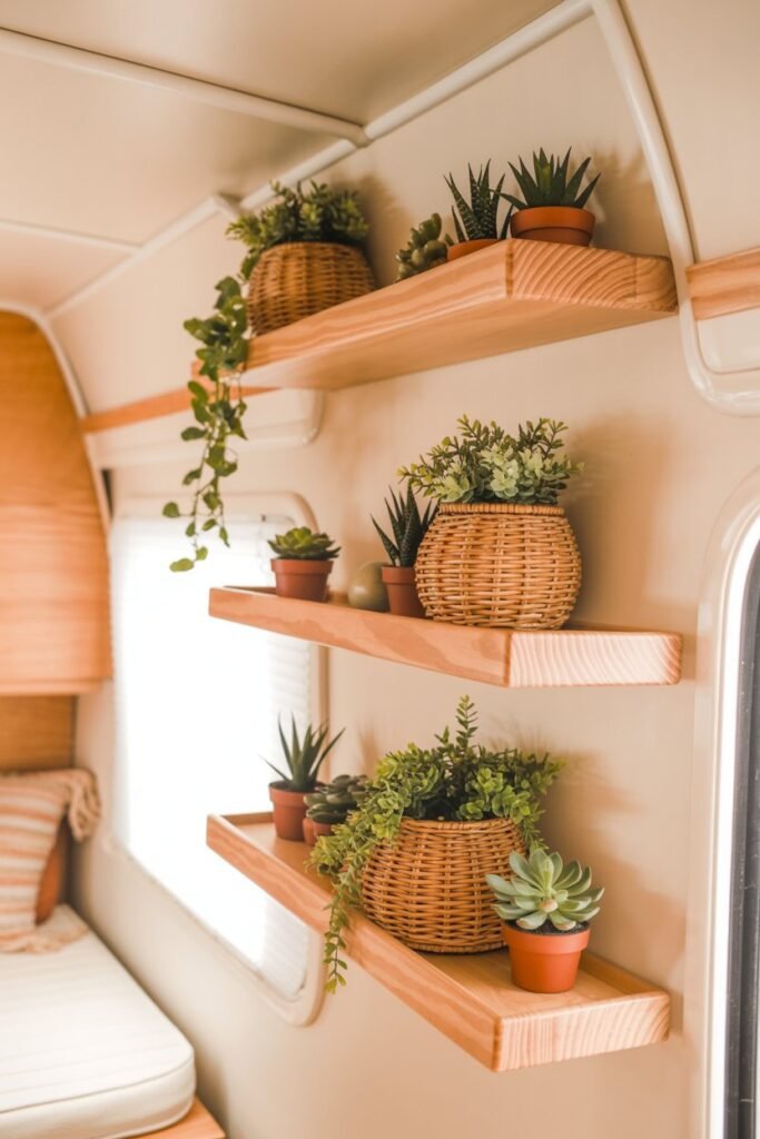 Sturdy and stylish wood shelves perfect for displaying décor, books, and plants. Adds a warm, natural touch to any room or boho camper interior while maximizing wall storage space.