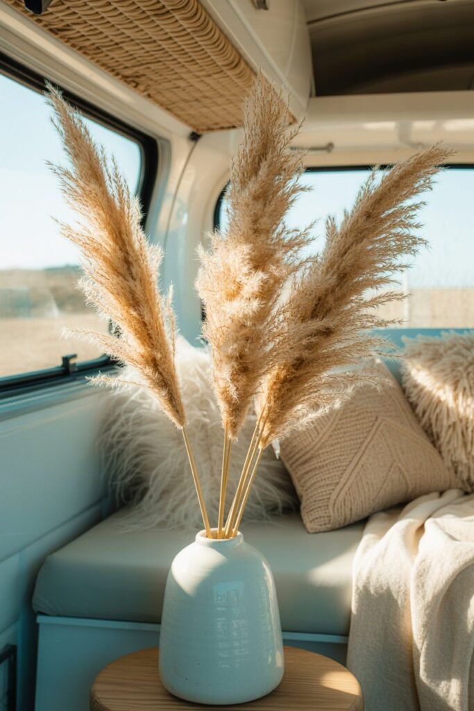 Elegant pampas grass bundle perfect for boho-style home decor, weddings, or van interiors. Adds soft, natural texture and height to any space, creating a warm, airy, and stylish ambiance.