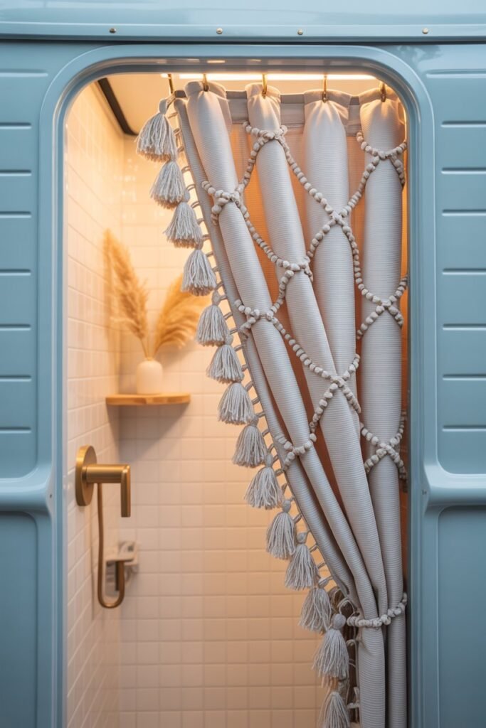A beautifully textured tufted shower curtain that instantly elevates any bathroom with a soft boho charm. Its thick woven details, high-quality fabric, and artisan-inspired patterns make it perfect for camper bathrooms, small-space makeovers, or cozy home décor.