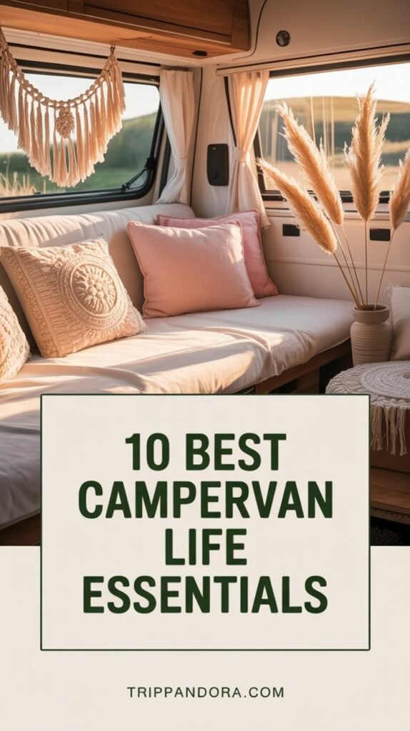 Here are my 10 favorite boho campervan essentials, why you absolutely need them, how to style them in a tiny space, and the exact Amazon-friendly items you can use to recreate the look.