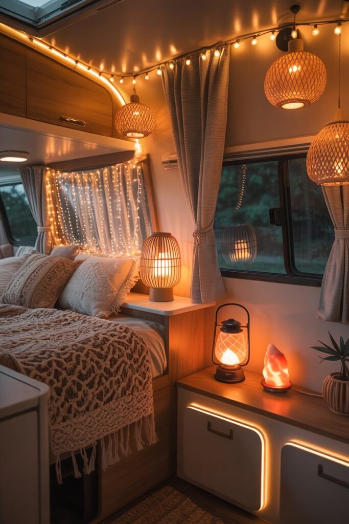 Lighting sets the mood more than any other design choice especially in a camper.