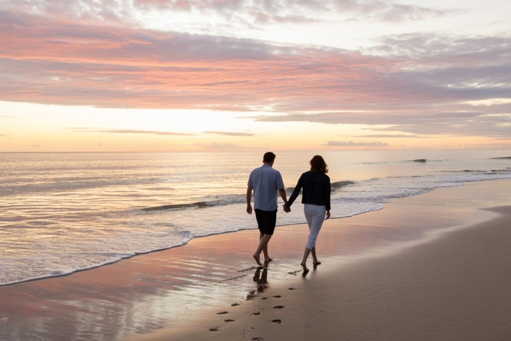 Free beach access, affordable accommodations, and plenty of casual dining options keep costs low. Couples can enjoy sunrise walks, evening boardwalk strolls, and relaxed beach days without planning much.