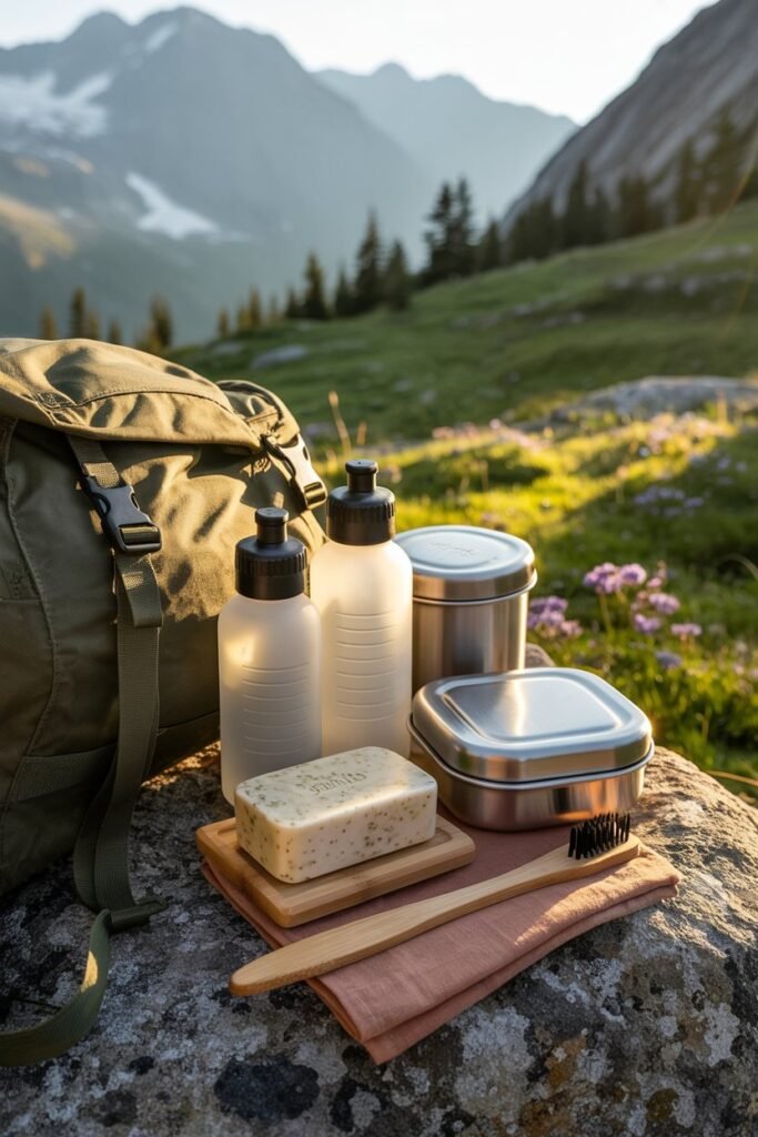 Carry a small hygiene kit in a waterproof bag that includes only the essentials. Lightweight travel containers help reduce waste and keep your backpack organized.