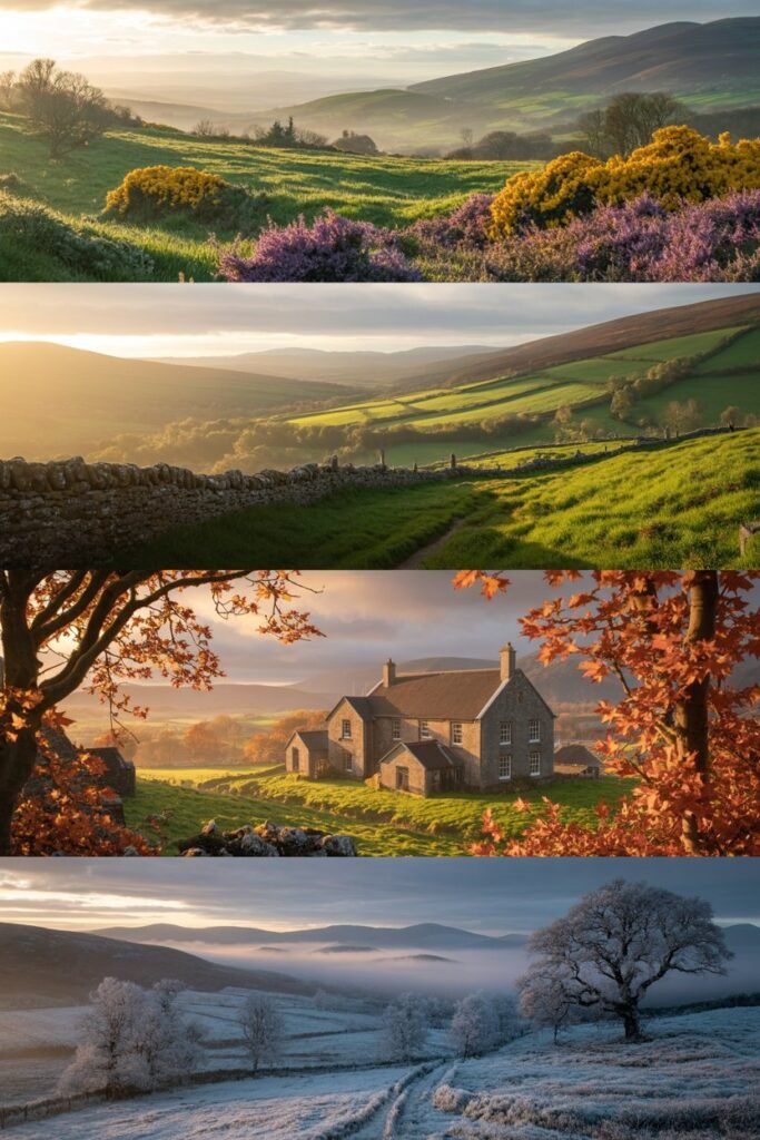 - Emerald hills burst into bloom, and the countryside feels alive with color.