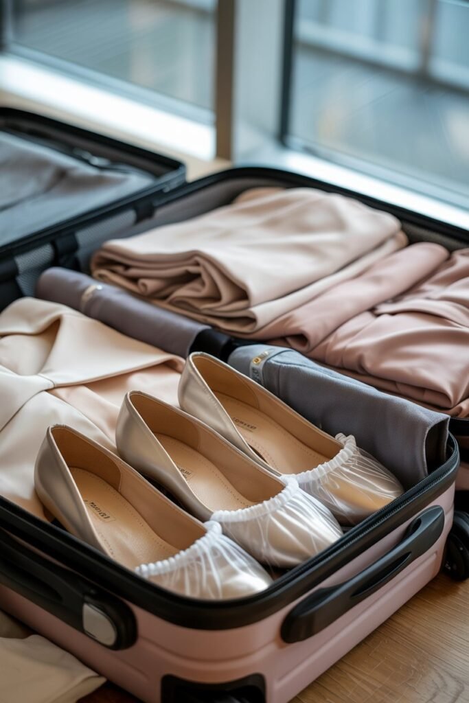 2. The Shower Cap Shoe Trick (And Why I Prefer It Over Shoe Bags)