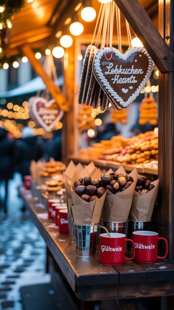 - Glühwein / Punsch: Warm mulled wine or non-alcoholic punch sold across stalls.
