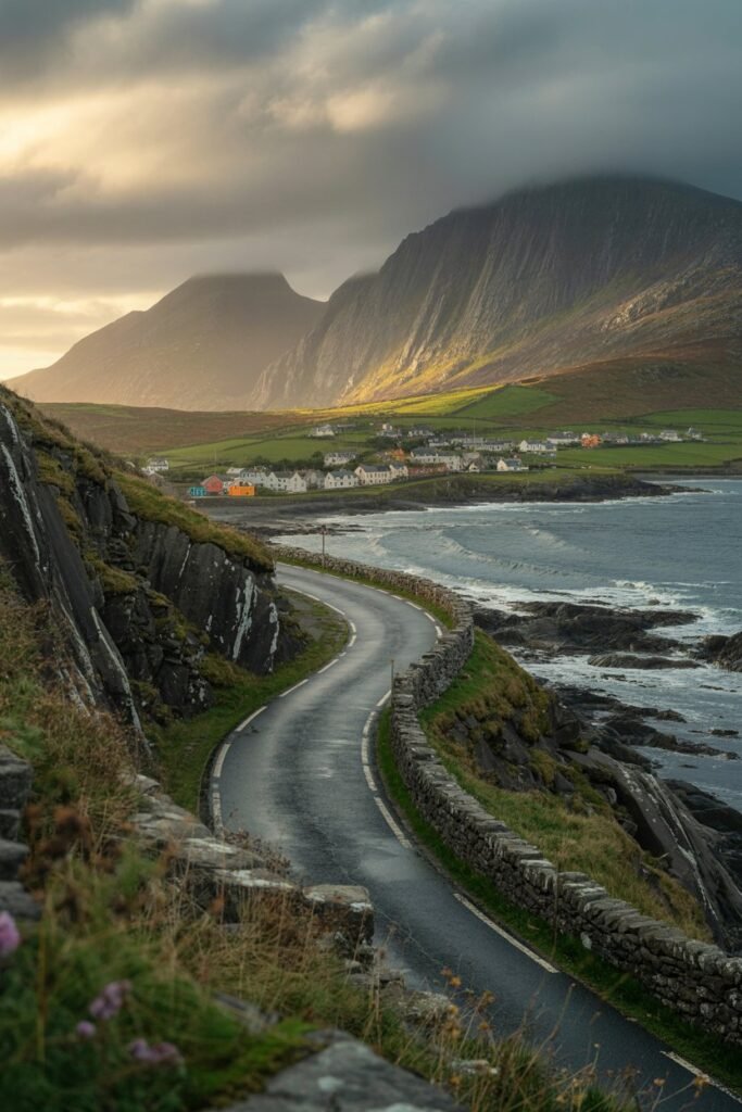 The Ring of Kerry is famous and beautiful but the Beara Peninsula feels like Ireland’s secret. Narrow roads curve along rugged coastlines, colorful villages appear unexpectedly, and the landscape feels raw and untouched.
